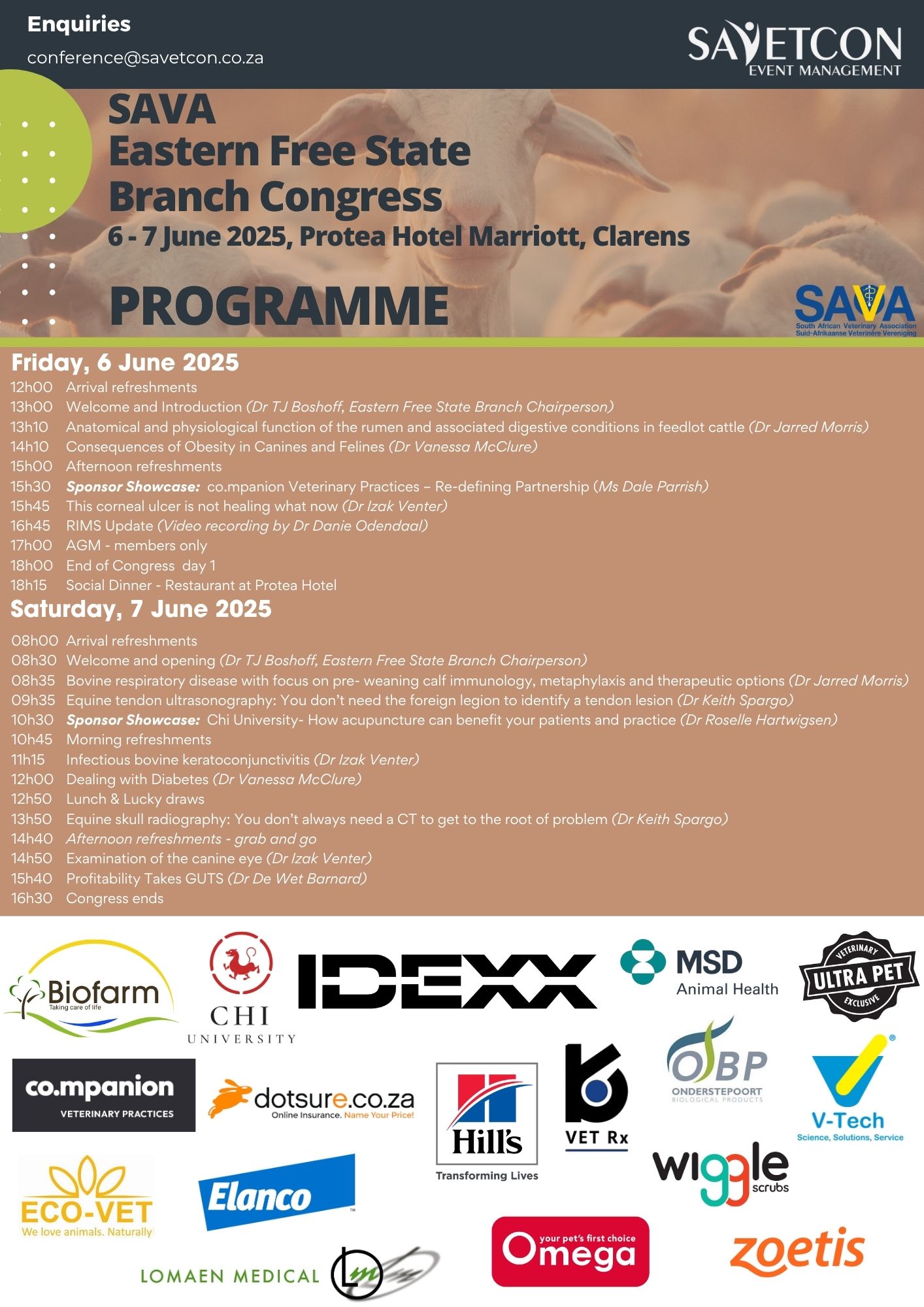 On behalf of the SAVA Eastern Free State Branch, I am pleased to invite your participation at our 2025 Branch Congress, to be held at the Protea Hotel Marriot in Clarens.