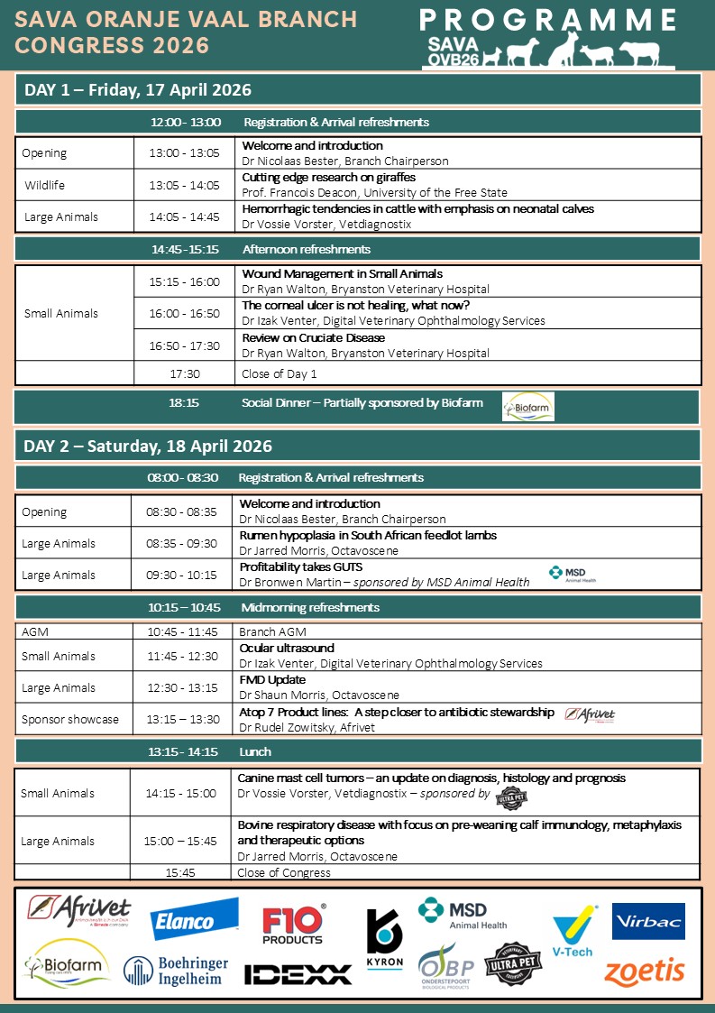 On behalf of the SAVA Oranje Vaal Branch, I am pleased to invite your participation at our 2026 Branch Congress, to be held at Khaya iBubesi in Parys.